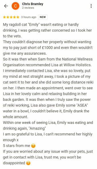 So if your animal seems not to be it's normal self, or perhaps there is some suspected or known health issue that isn't improving, even though you may have tried more conventional methods to helpClick on the book now button below to message Lisa personally to find the best solution for you and your animalOne Hour Animal Healing Session